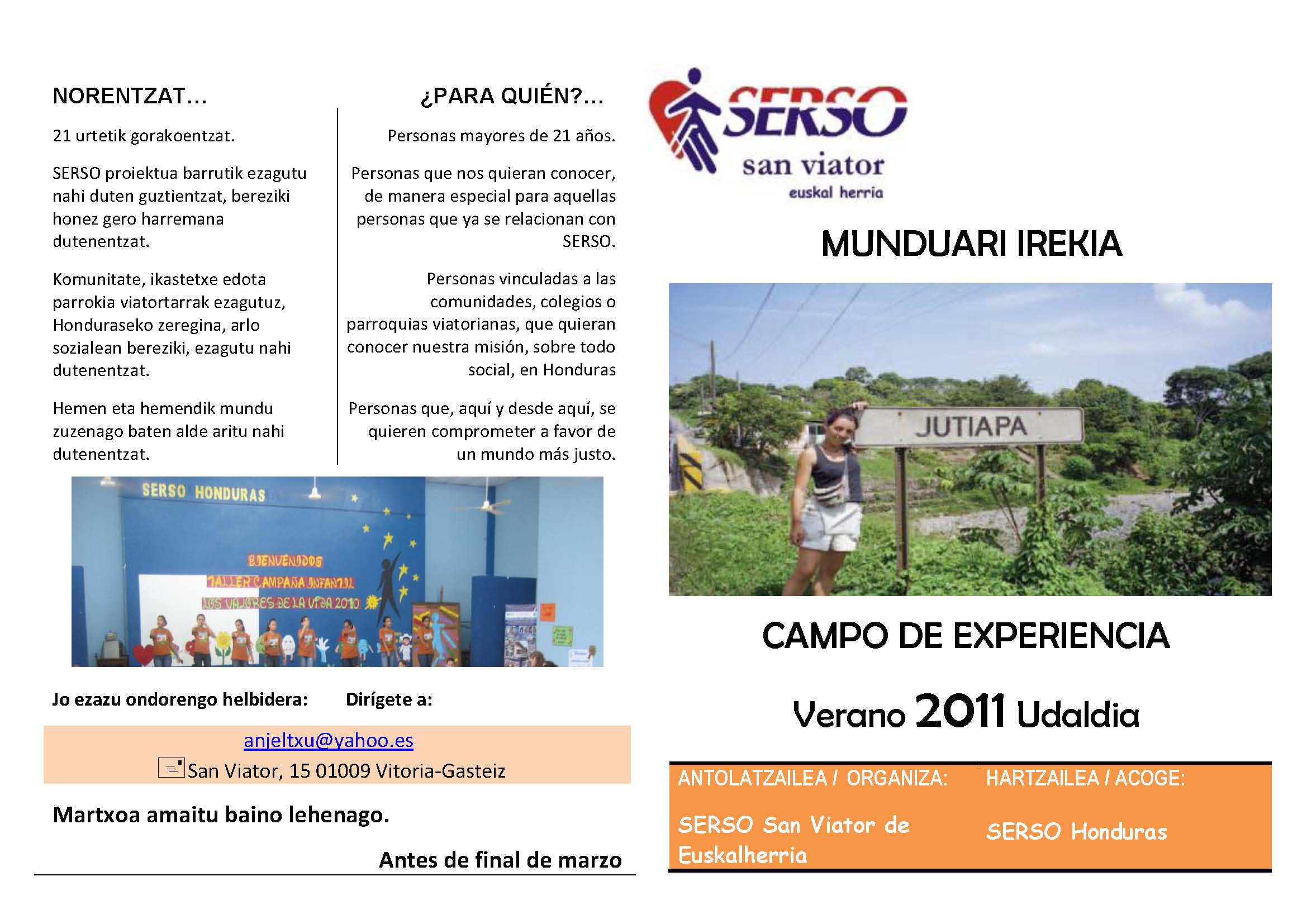 Aurreko urtetan bezala, Jutiapako Mundu Irekia aurkezten dizuegu. «Komunitate, ikastetxe edota parrokia viatortarrak ezagutuz, Honduraseko zeregina, arlo sozialean bereziki, ezagutu nahi dutenentzat» zuzenduta dago eskaintza.