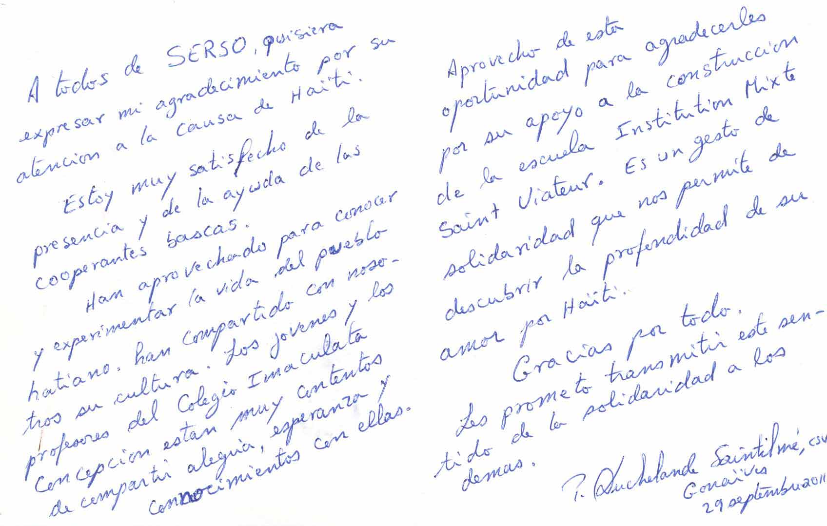 Nos escribe Duchelande Saintilmé dándonos las gracias por nuestro apoyo al proyecto ‘Institution Mixte Saint Viateur’ y por la presencia de las tres cooperantes (Ane, Klara y Nekane) durante los meses de julio, agosto y septiembre.