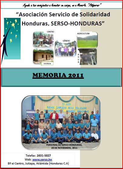 SERSO Honduras en nuestra contraparte en Jutiapa, departamento Atlántida de Honduras. Os presentamos su Memoria del año 2011.