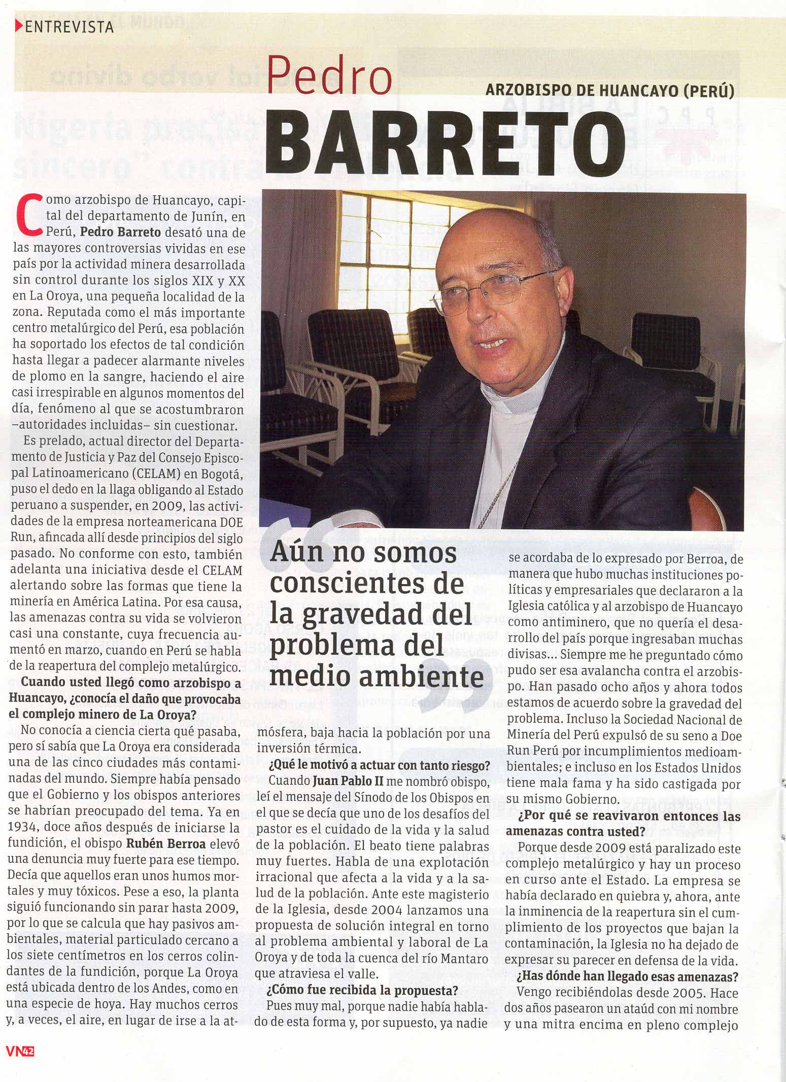 Entrevista a Pedro Barreto, arzobispo de Huancayo en Vida Nueva (09.06.12)